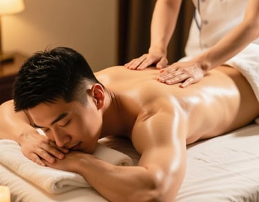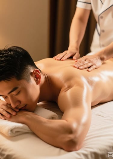 美肤热精油开背、臀部疗法、指套护理、前列腺线护理、美热双蛋疗法、抓胧根、解压放松,恢复元气